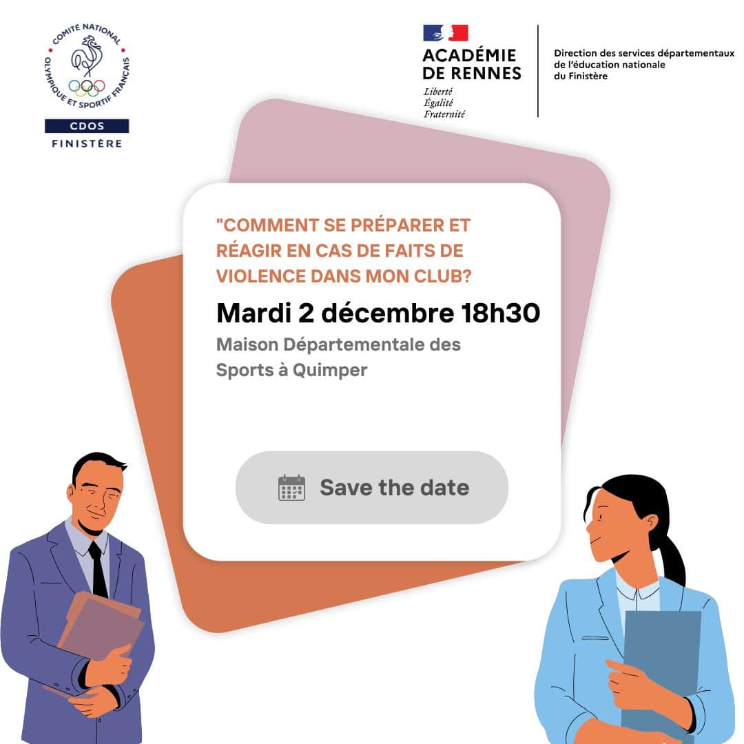 Le CDOS 29 et le SDJES 29 ont le plaisir de vous proposer une rencontre sur le thème « Comment se préparer et réagir en cas de faits de violence dans mon club ? ».