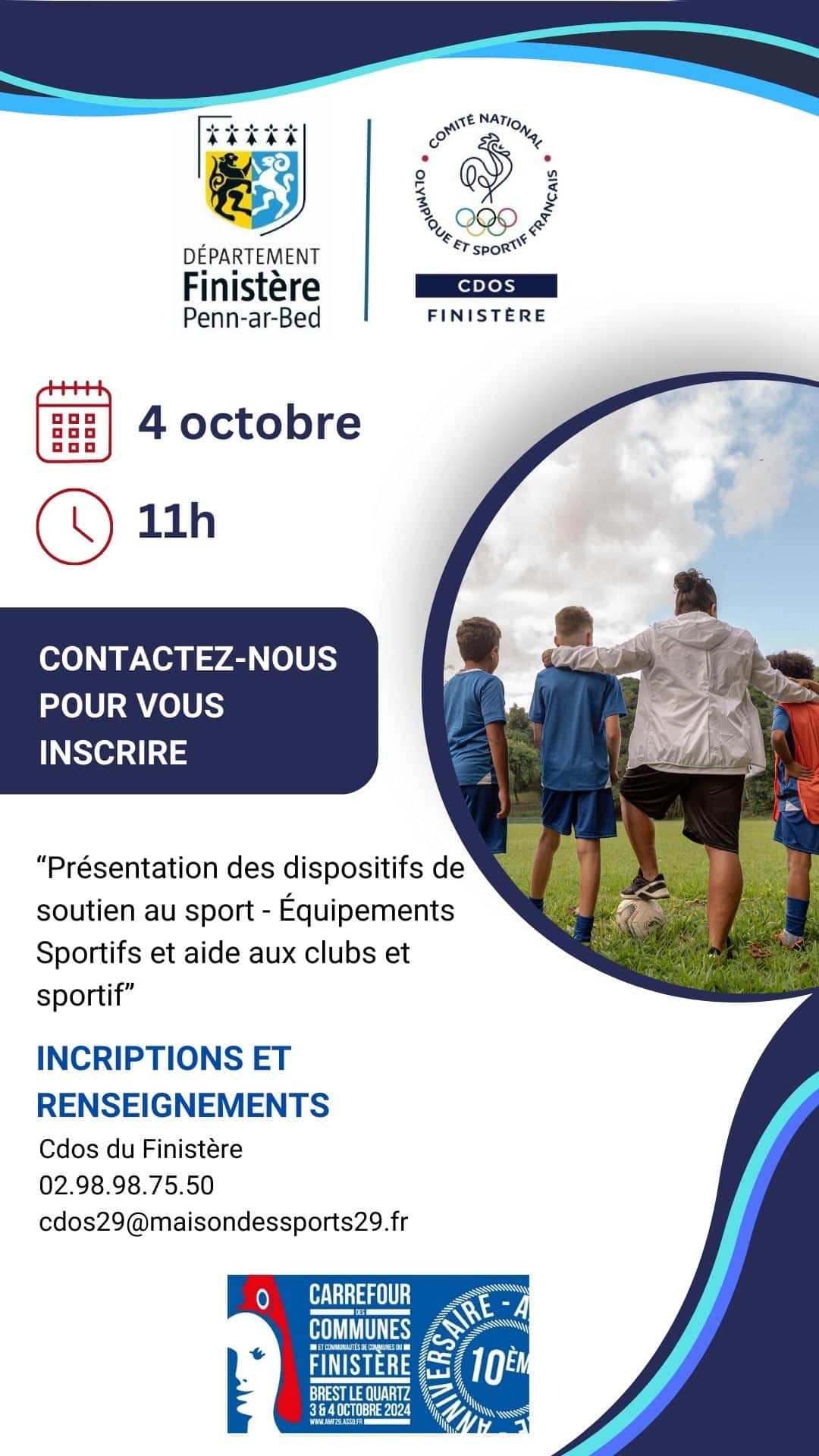 Le CDOS animera un stand au Carrefour des communes le 3 et 4 octobre au Quartz à Brest. Un temps fort est prévu le 4 octobre 2024 de 11h à 12h !